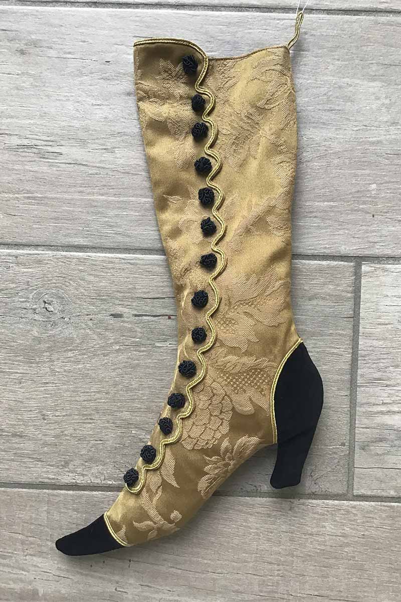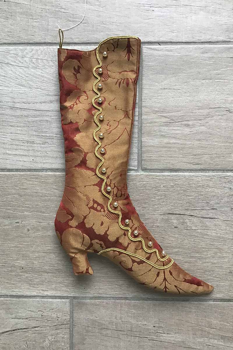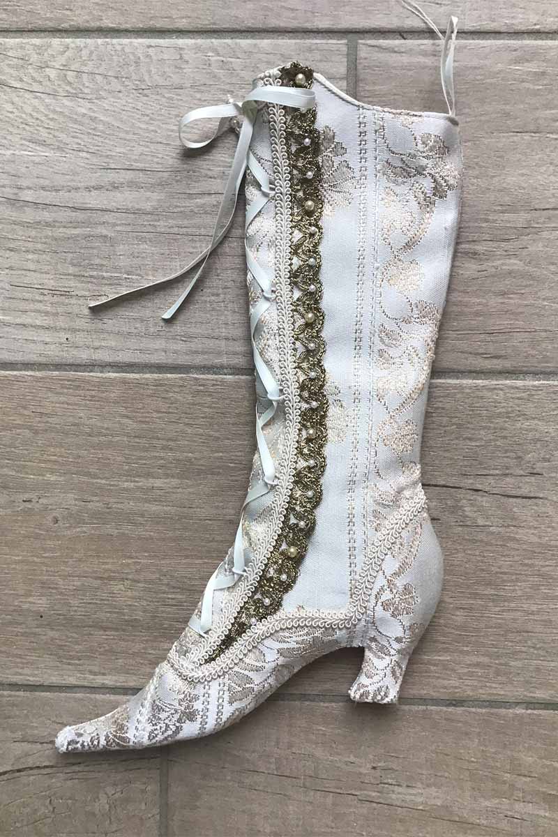 Seit vielen Jahren gibt es meine Nikolausstiefel im historischen Stil nach eigener Schnitterstellung gefertigt. Durch kleine schnittechnische Abweichungen im Detail werden zusätzlich durch immer wieder andere Stoffe, Borten und Applikationen neue Entwürfe geschaffen. Zeitweise in verschiedenen Geschäften der Stadt erhältlich, aber nun ausschließlich auf Anfrage, können eure ganz persönlichen Modelle in Farbe, Schnitt und Design mit mir zusammen gestaltet werden. Bitte meldet euch mindestens einen Monat vorher für eure Stiefelchen.